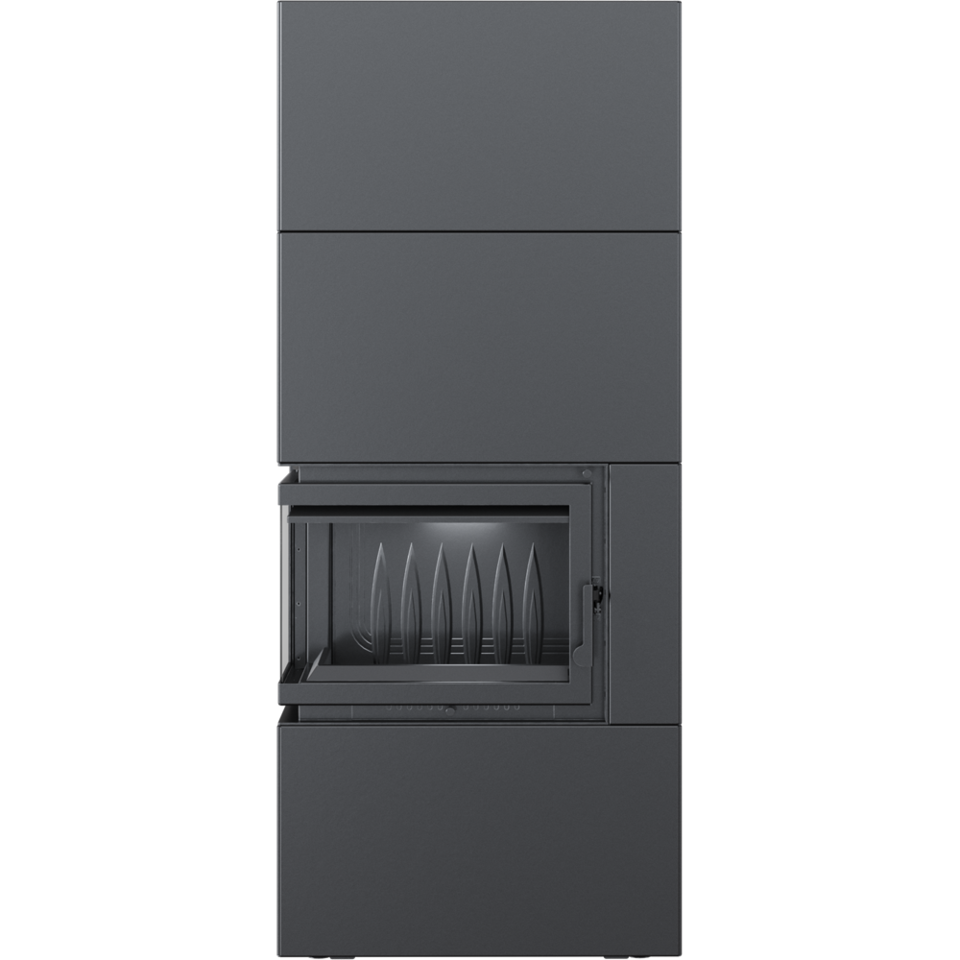 Kominek żeliwny SIMPLE 8 BOX lewy czarny to połączenie nowoczesnego i ekologicznego wkładu SIMPLE oraz gotowej obudowy modułowej ze stali w kolorze czarnym.