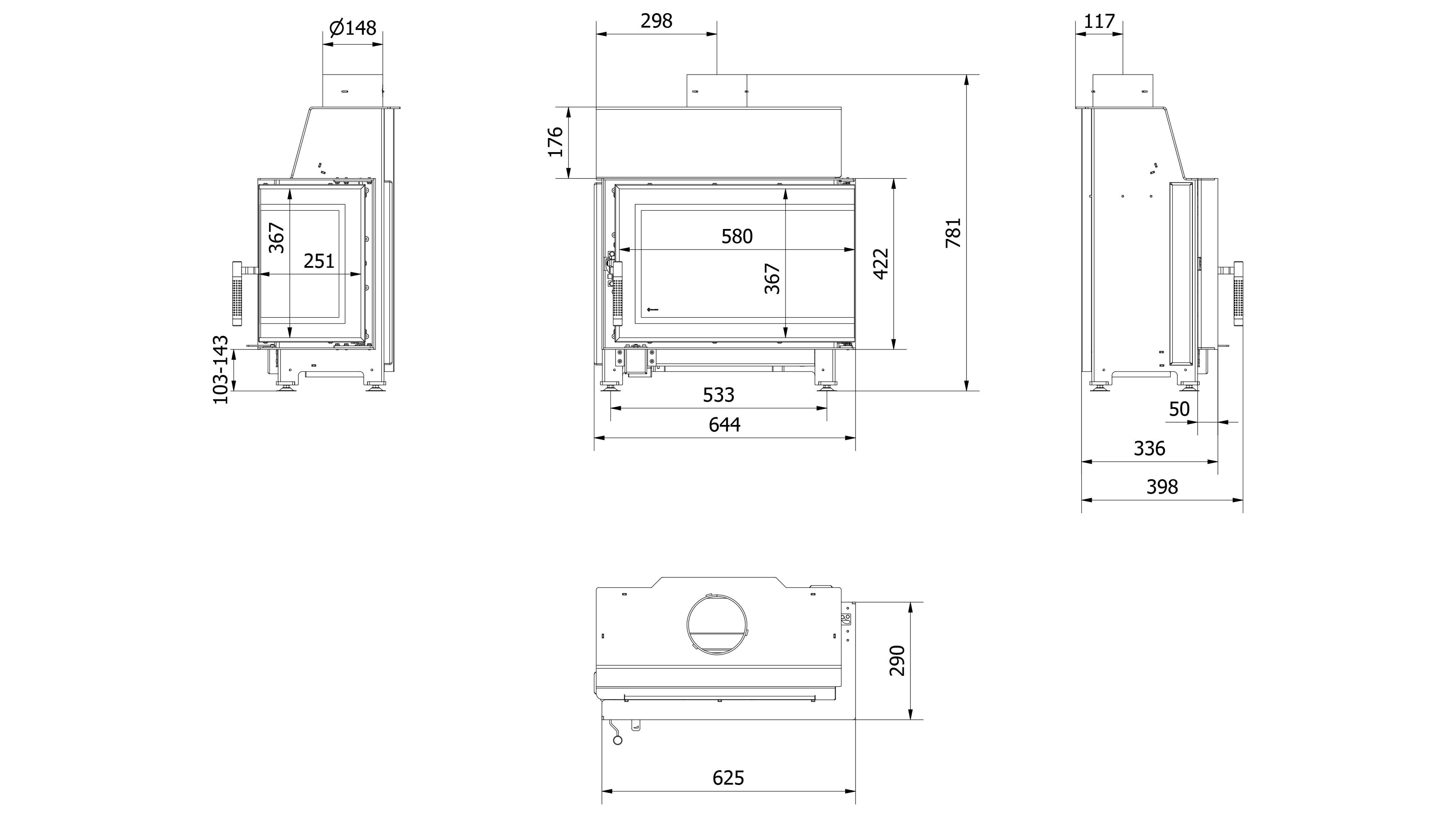Kominek stalowy Simple Prawy 6 kW fi 150
