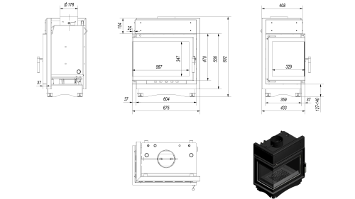Kominek żeliwny Zuzia Deco 15 Wkład żeliwny Zuzia 15 Deco